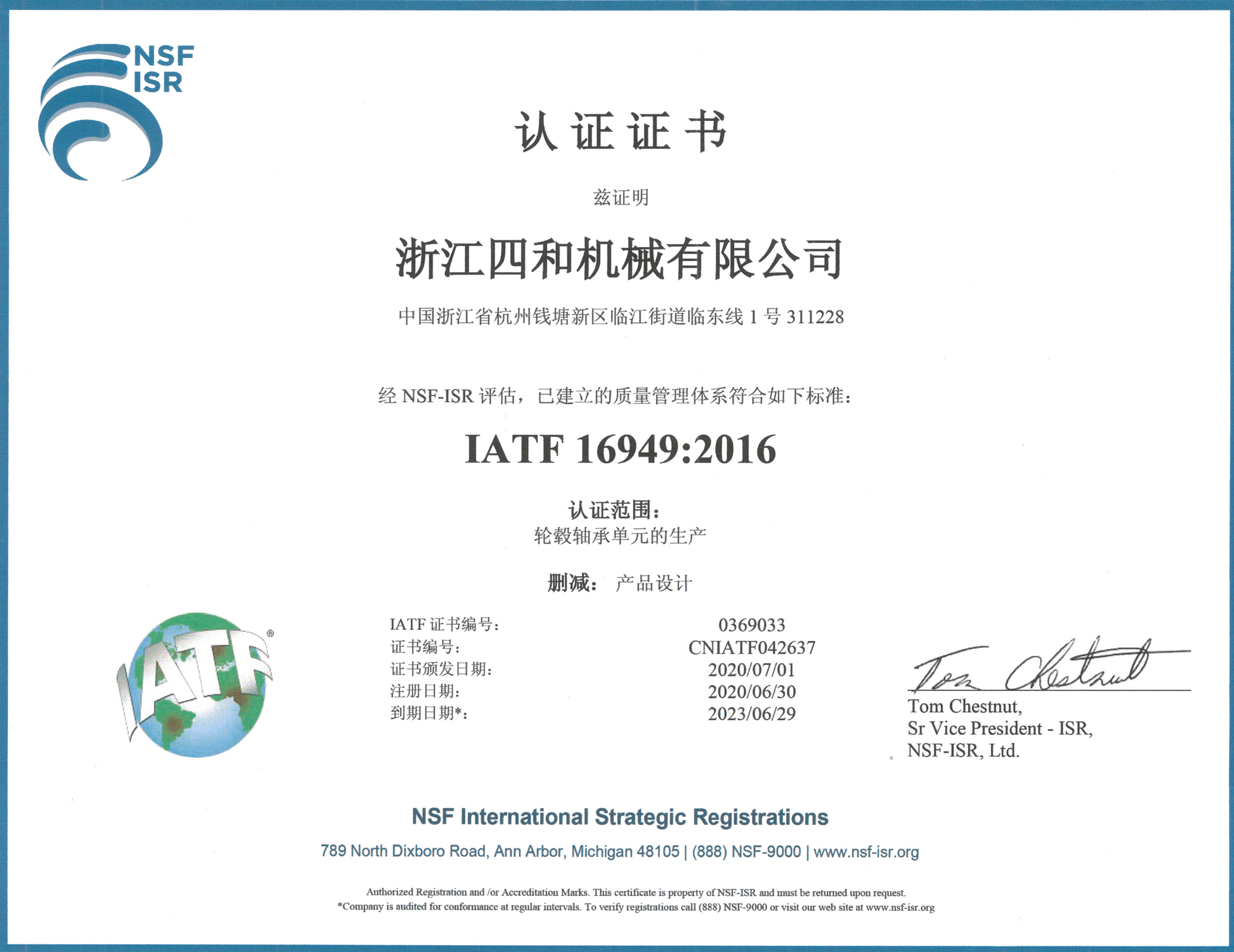 2020年通過IATF16949:2016質量管理體系認證